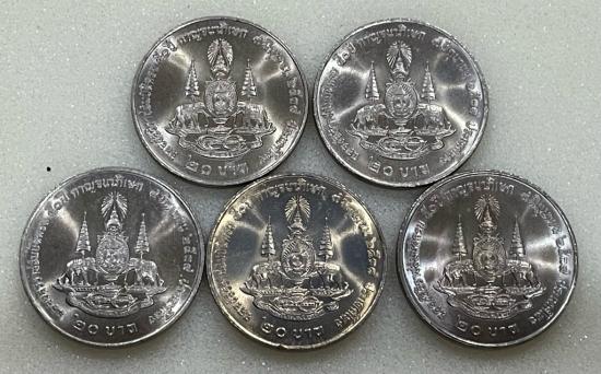 ++++120++++เหรียญ ร.9 ครองราชย์ครบ50ปี ปี2539 หน้าเหรียญ20บาท จำนวน5เหรียญ สวยไม่ผ่านใช้ |