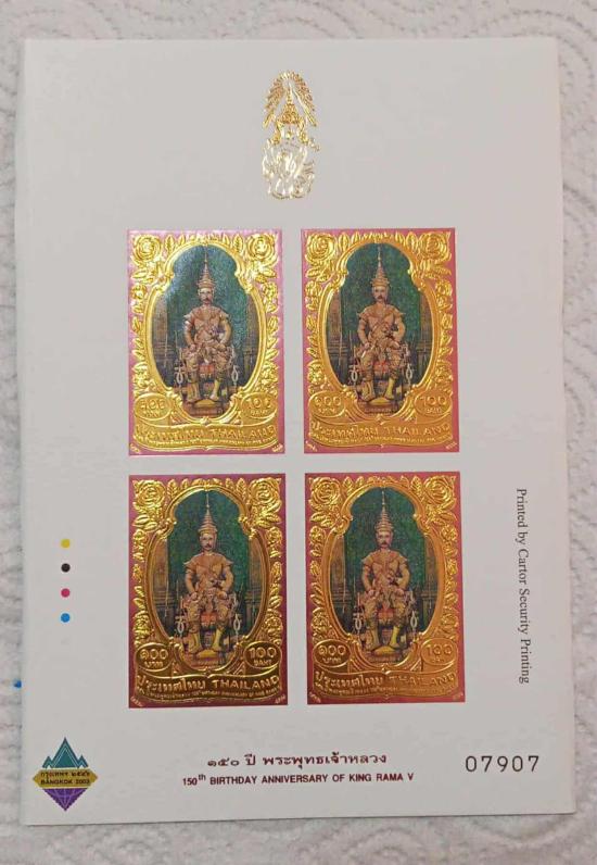 แสตมป์ 150 ปี พระพุทธเจ้าหลวง วันแรกจำหน่าย. 20 กันยายน 2546 ราคาหน้าดวง 100 บาท จำนวน 4 ดวงแบบไม่ปรุครับ พร้อมกรอบตั้งตามภาพครับ จำนวน 1 แผ่นครับ |