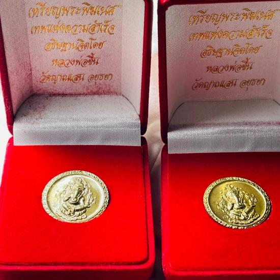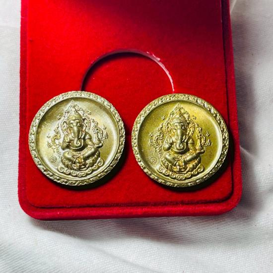 2 เหรียญพร้อมกล่อง เหรียญพระพิฆเนศหลวงพ่อชื้น วัดญาณเสนปีพ.ศ 2546 |