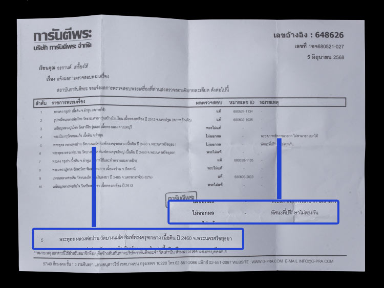 พระหลวงพ่อปาน วัดบางนมโค พิมพ์ทรงครุฑกลาง เนื้อดิน ปี 2460 จ.พระนครศรีอยุธยา พร้อมใบรายงานผล |