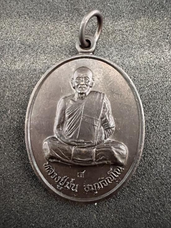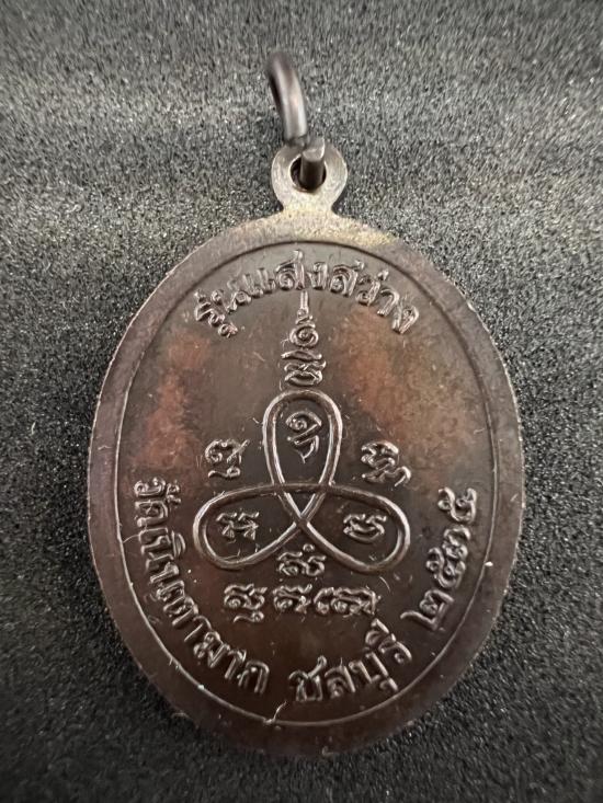 เหรียญหลวงปู่ม่น วัดเนินตามาก จ.ชลบุรี รุ่นแสงสว่าง ปี35 เนื้อทองแดงรมดำ ตอกโค้ด ส