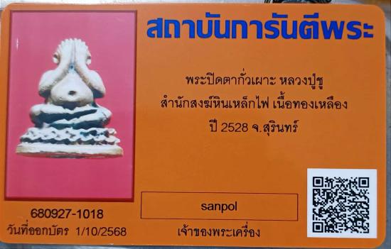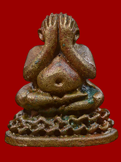 ปิดตากัวเผาะ(เนื้อโลหะ ก้นอุดผงพรายกุมาร) หลวงพ่อชู สำนักสงฆ์หินเหล็กไฟ อ.ท่าตูม จ.สุรินทร์ จัดสร้างเมื่อปีพ.ศ.2528 องค์พระมีขาด 1.2 x 2.0 cm โดยองค์พระประกอบด้วยมวลสารอันทรงอิทธิฤทธิ์ยิ่ง อาทิเช่น การหล่อโดยทำการหล่อจากชินกัวเผาะ และใต้ฐานอุดผงพรายกุมารของหลวงปู่ทิมล้วนๆ ซึ่งการประกอบพีธีพุทธาภิเษกทำในวันที่ 28 ต.ค.2528(ขึ้น15 ค่ำ เดือน 11) เวลา 22.58 น.เป็นวันที่ราหูอมจันทร์พอดี ซึ่งตามคติของไสยเวทย์ ถือเป็นช่วงเวลาที่เป็นมหานิยมอย่างสูง เหมาะสำหรับทำพิธีปลุกเสกพระที่เน้นหนักทางด้านเมตตามหานิยม และโชคลาภอย่างยิ่ง...............องค์พระสภาพสมบูรณ์ สวย ดูง่ายครับ โค๊ดชัด ก้นอุดผงพรายกุมาร แท้ล้าน% รับรองโดย "g-pra" คับ |