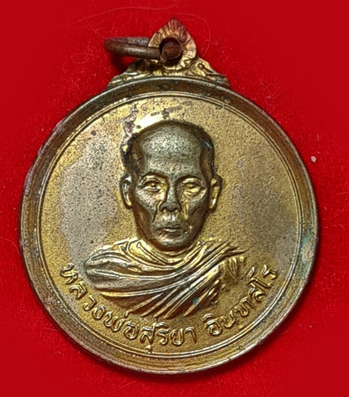 วัดใจ 50 .-/ เหรียญหลวงพ่อสุริยา วัดเขาช่องโกรน อ.แหลมสิงห์ จ.จันทบุรี กะไหล่ทอง-นิยม ปี 2520