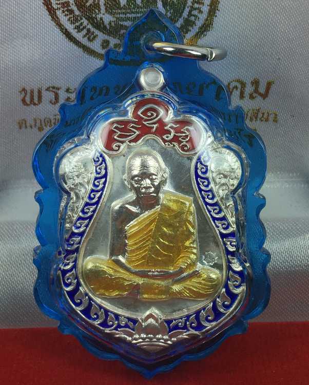 วัดใจ***เสมาคูณสิบทิศ ปี ๒๕๕๘ เหรียญเสมาหลวงพ่อคูณ ปริสุทโธ วัดบ้านไร่ "๑ ใน ๓๙๙ เหรียญ" เนื้อเงิน หน้ากากเงิน ขอบเงิน ลงยา ๓ สี (บนแดง ขอบน้ำเงิน จีวรเหลือง) หมายเลข ๓๗๘ เลี่ยมกันน้ำ