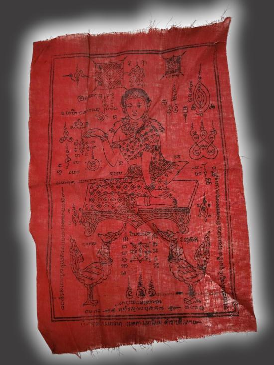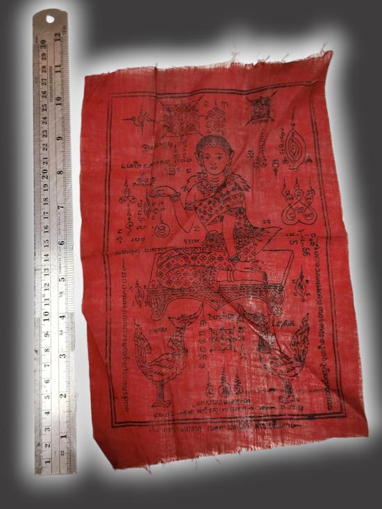 A1334.ผ้ายันต์นางกวักเก่า สีแดง ไม่ทราบที่ เคาะเดียวเเดง |