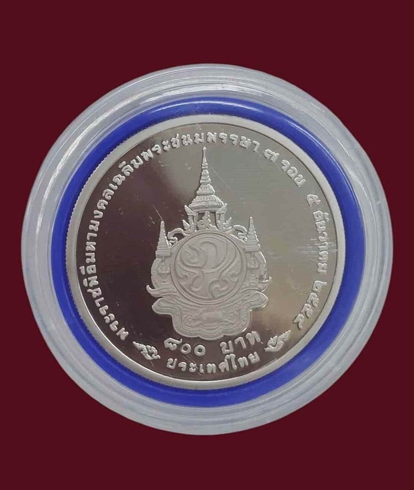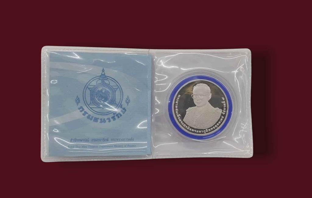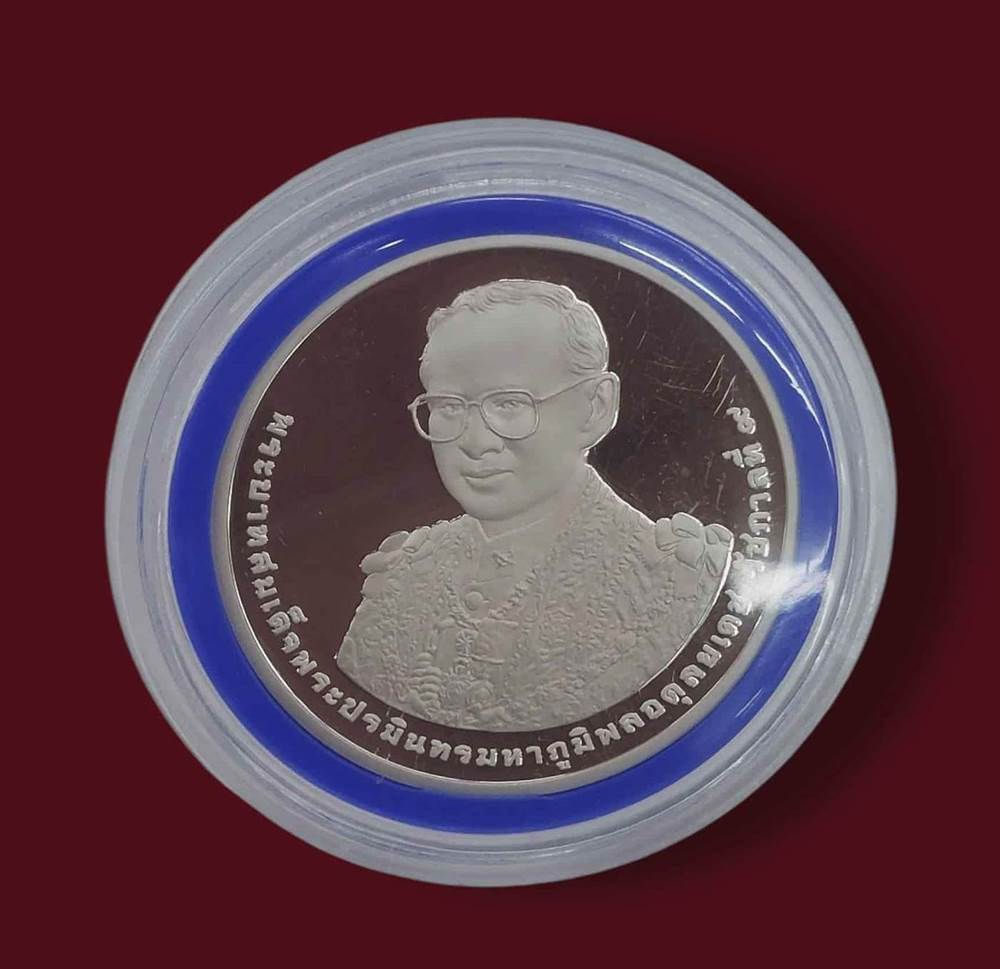 เหรียญกษาปณ์ 800 บาท ในหลวงรัชกาลที่ 9 ที่ระลึกพระราชพิธีมหามงคลเฉลิมพระชนพรรษา 7 รอบ เนื้อเงินขัดเงา ปี 2550 สภาพสวยเดิม UNC ผลิตน้อย 50000 เหรียญ |