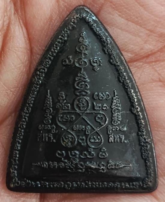 เหรียญสามเหลี่ยม ยันต์ หลวงพ่อทองกลึง วัดเจดีย์หอย จงปทุมธานี ตอกโค๊ต สวยดำๆตามรูปเลยครับ. |
