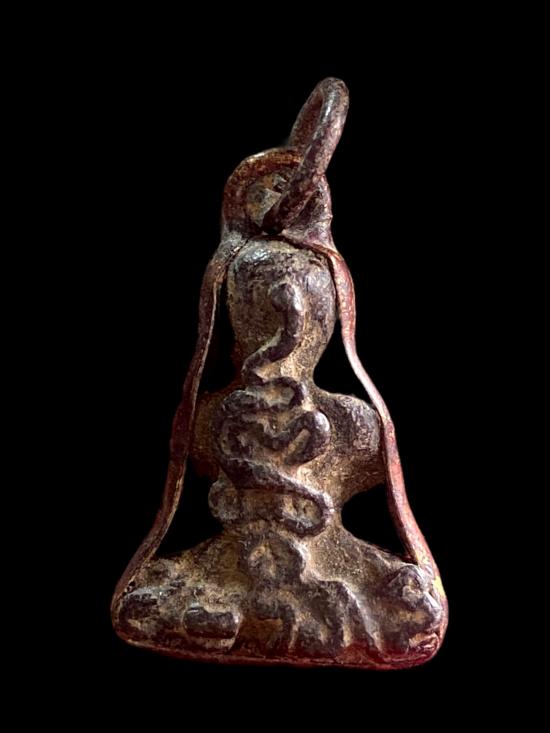 องค์นี้พิมพ์ทรงคลาสสิก อกพูน แขนแนบตะโพก ฐานแน่นสมส่วน ถือเป็นพระปิดตาที่พุทธคุณแรงทั้ง เมตตามหานิยม ค้าขายดี แคล้วคลาด คงกระพัน และโชคลาภทางการเงิน