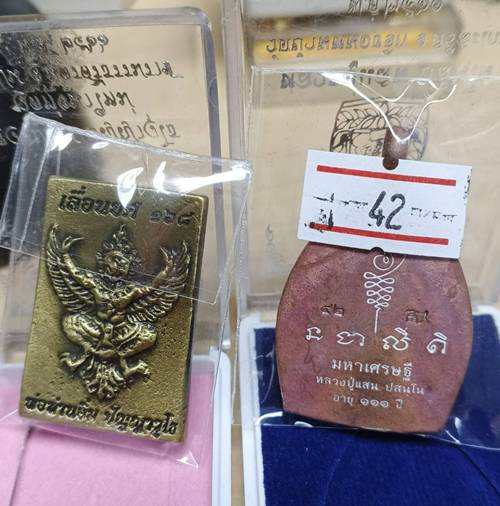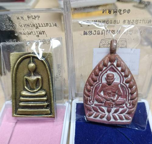 หล่อโบราณ สมเด็จหลังพญาครุฑ รุ่นเลื่อนยศ 168 ของพ่อท่านอิ่ม วัดทุ่งนาใหม่ นครศรีธรรมราช และ เหรียญเจ้าสัวหล่อโบราณ เจ้าสัวมหาเศรษฐี หลวงปู่แสน วัดหนองจิก ศรีษะเกษ เลข 42 คราบแป้งเดิมๆๆ