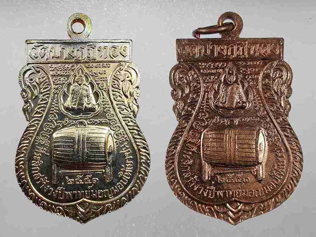 เหรียญพ่อแก่หลวงพ่อชำนาญ ปี 2551 เนื้อทองเเดง วัดบางกุฎีทอง จ.ปทุมธานี |