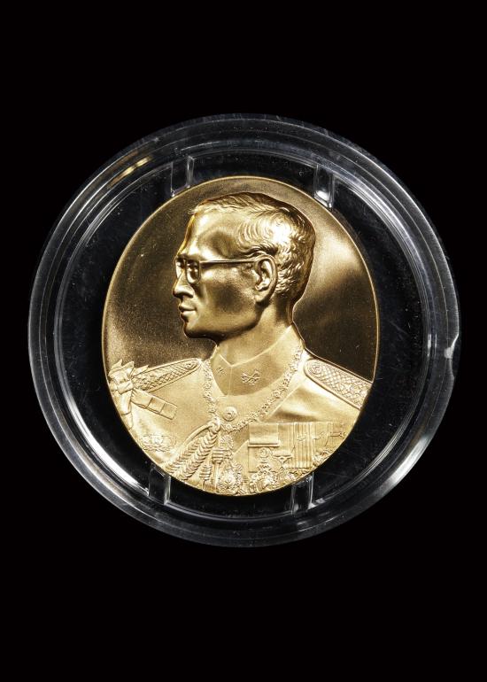 เหรียญในหลวงร.9 ฮูกานิน สวิส ที่ระลึกเถลิงถวัลยราชปีที่50 และที่ระลึกสร้างพระมหาธาตุเจดีย์ภักดีประกาศ (((เนื้อบรอนซ์ สวิส))) สภาพสวย กล่องเดิม