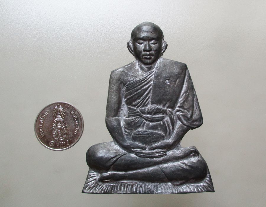 รูปเหมือนปั้มจั้มโบ้หลังลายผ้า หลวงพ่อชำนาญ อุตตมปัญโญ วัดบางกุฎีทอง จ.ปทุมธานี เนื้อตะกั่ว ตอกโค๊ต จารยันต์ |