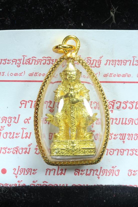 ** พร้อมเลี่ยมไมครอน วัดใจ 100 เดียว **รูปหล่อท้าวเวสสุวรรณ พิมพ์หน้ายักษ์ หลวงพ่ออิฏฐ์ วัดจุฬามณี เนื้อทองเหลือง ปี 2559 สมุทรสงคราม สภาพสวยเดิมๆไม่ผ่านการใช้ พร้อมใบคาถา// |