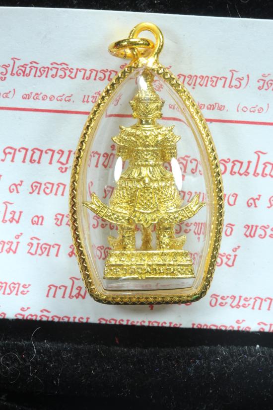 ** 100 เดียวพร้อมเลี่ยมไมครอน **ท้าวเวสสุวรรณฯ วัดจุฬามณี รูปหล่อขนาดห้อยคอ หน้าเทพ เนื้อทองทิพย์ ปี 2562/// |