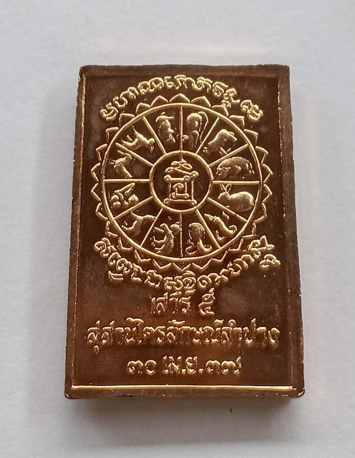 เหรียญนั่งพานสี่เหลี่ยมหลวงพ่อเกษม เขมโก หลัง12ราศีเสาร์5 สุสานไตรลักษณ์ จ.ลำปาง ปี2537 พร้อมกล่องเดิม