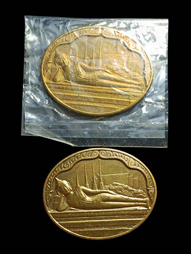 จำนวน 2 องค์ เหรียญพระนอน วัดโพธิ์ หลัง "ภปร." มหามงคลเฉลิมพระชนมพรรษาครบ 5 รอบ 5 ธันวาคม ปี 2530 ซีลเดิม 1 องค์
