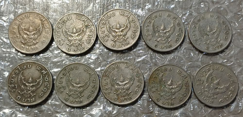 เหรียญ 1 บาท หลายวาระ รัชกาลที่ 9 จำนวน 85 เหรียญ (เหรียญครุฑ 10 เหรียญ) |