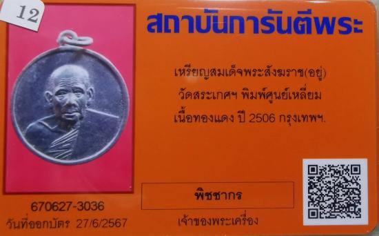 เหรียญสมเด็จพระสังฆราช (อยู่) วัดสระเกศ พิมพ์ศูนย์เหลี่ยม นิยม เนื้อทองแดง ปี2506 จ.กรุงเทพฯ |