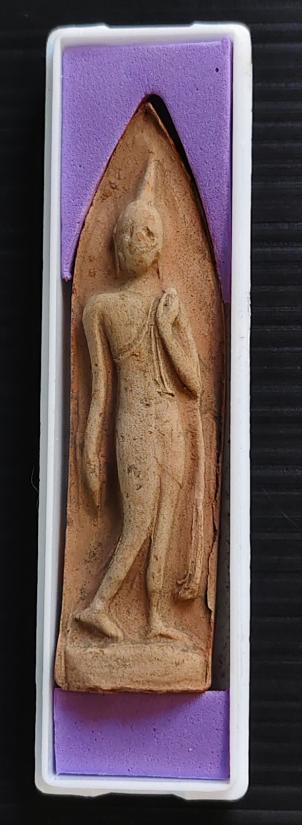 พระลีลาถ้ำหีบ เนื้อดินเผา หลวงพ่อชำนาญ วัดบางกุฎีทอง จ.ปทุมธานี ปี 2546 พร้อมกล่องเดิม
