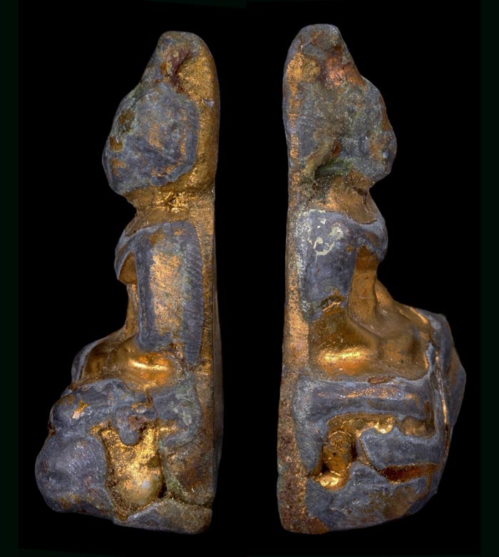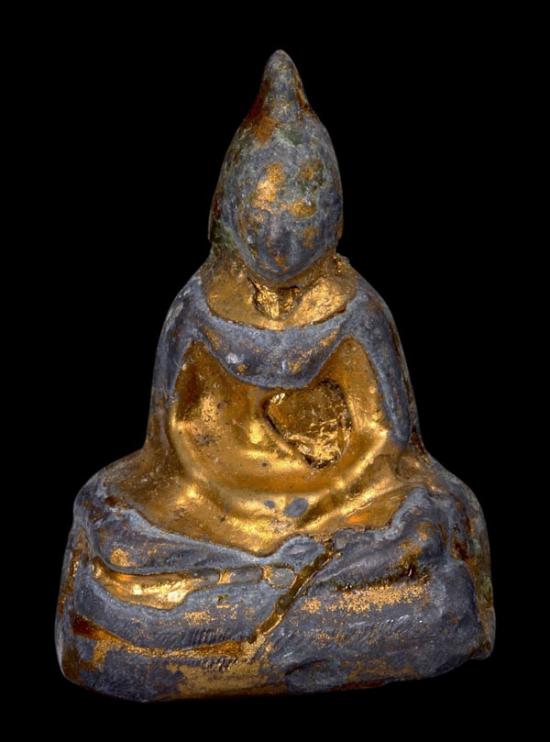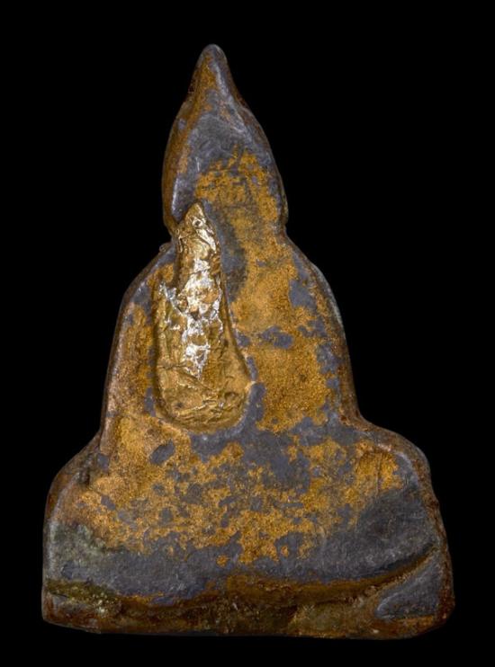พระพุทธ เนื้อตะกั่ว ผสมปรอท ฝังเขี้ยวหมาป่า ทาบรอน ปี 2443 หลวงพ่อดำ วัดกุฎี ปราจีนบุรี