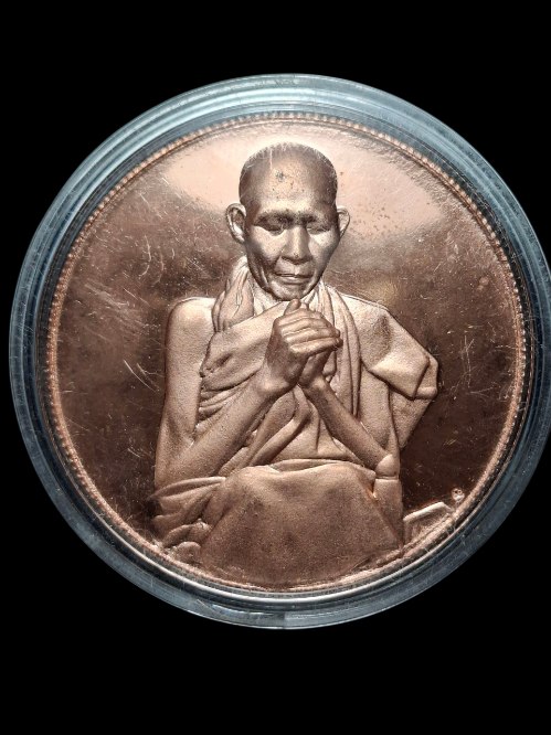 เหรียญบาตรน้ำมนต์หลวงพ่อเกษม เขมโก รุ่นบาตรทิพย์ เนื้อทองแดง ขนาด 5 ซม. ปี 2538 ตอก "นะ" |