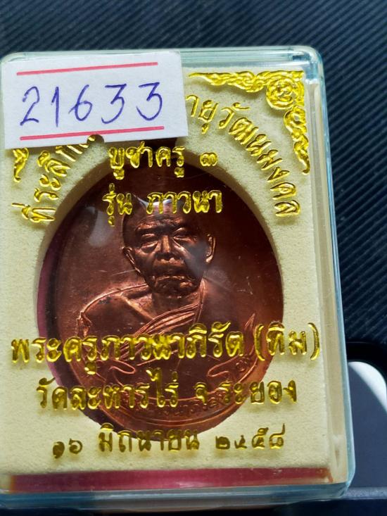 หลวงปู่ทิม ห่วงเชื่อมภาวนา บูชาครู ๓ เนื้อทองแดง ตอก 3 มีหมายเลขกำกับ |
