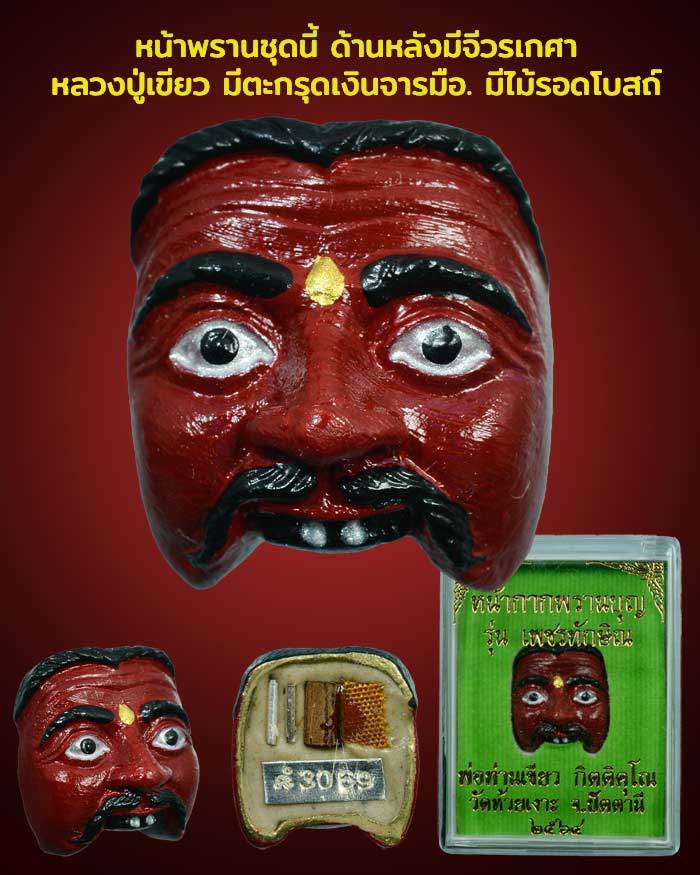 หน้าพราน รุ่นเพชร ทักษิณ เนื้อโลหะ หน้า แดง * หน้าพรานชุดนี้ ด้านหลังมีจีวรเกศา