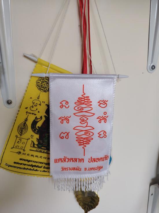 ผ้ายันต์แขวนหน้ารถ หลวงปู่แผ้ว วัดรางหมัน |