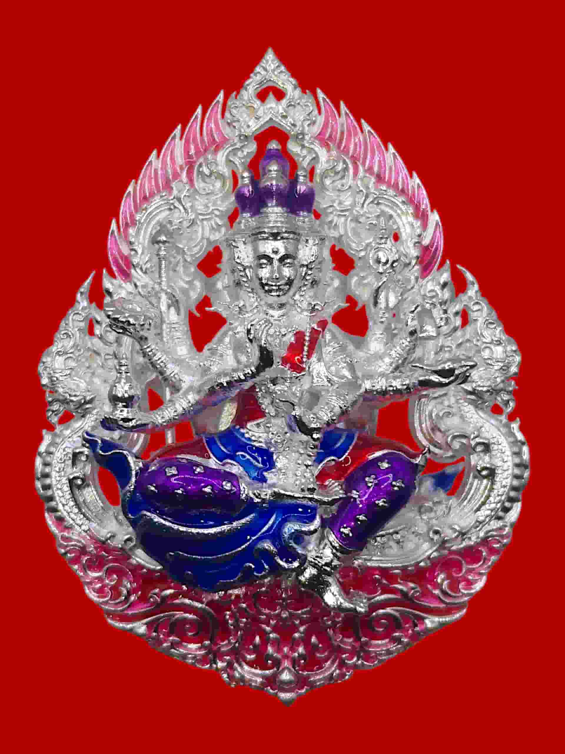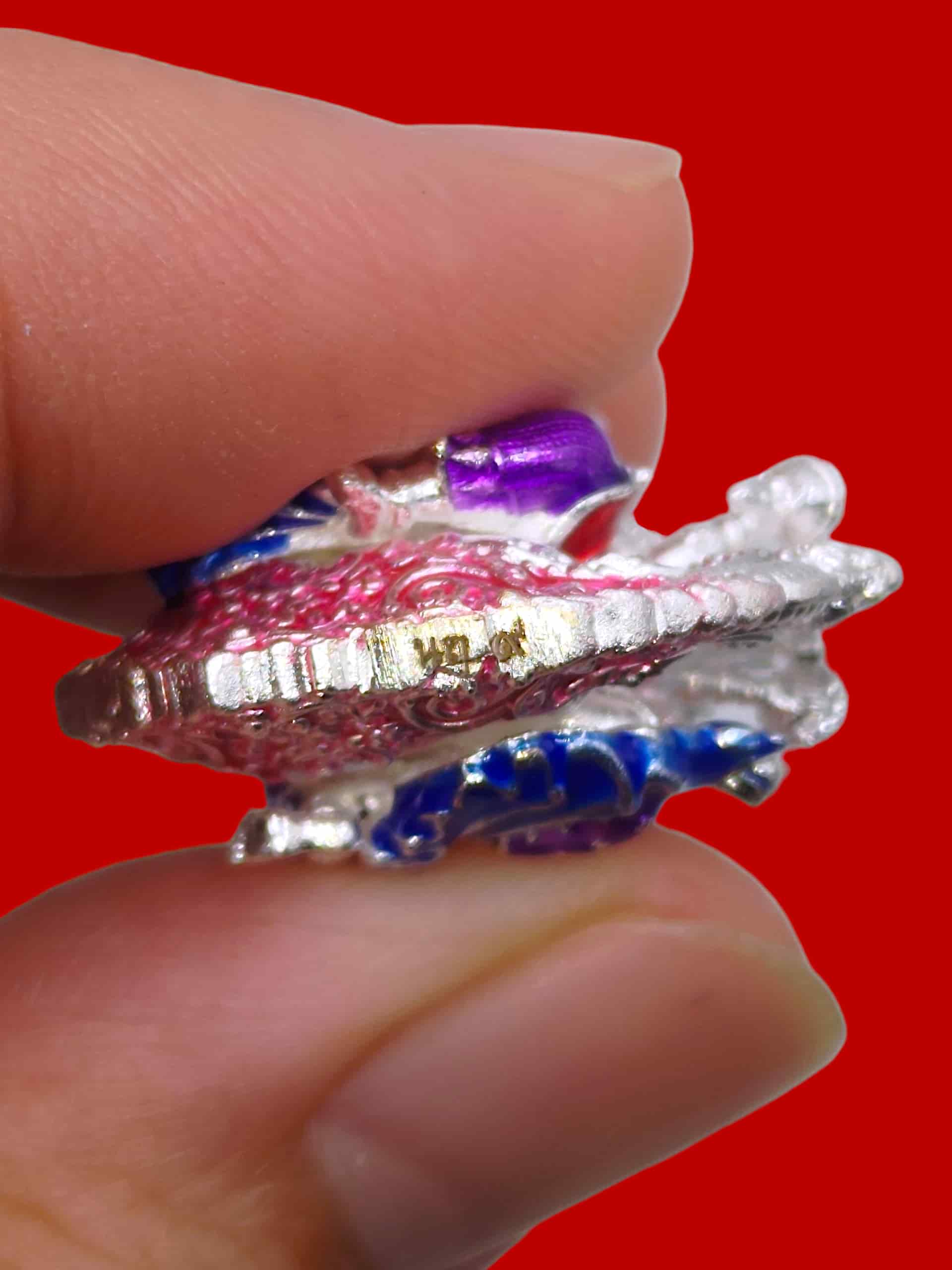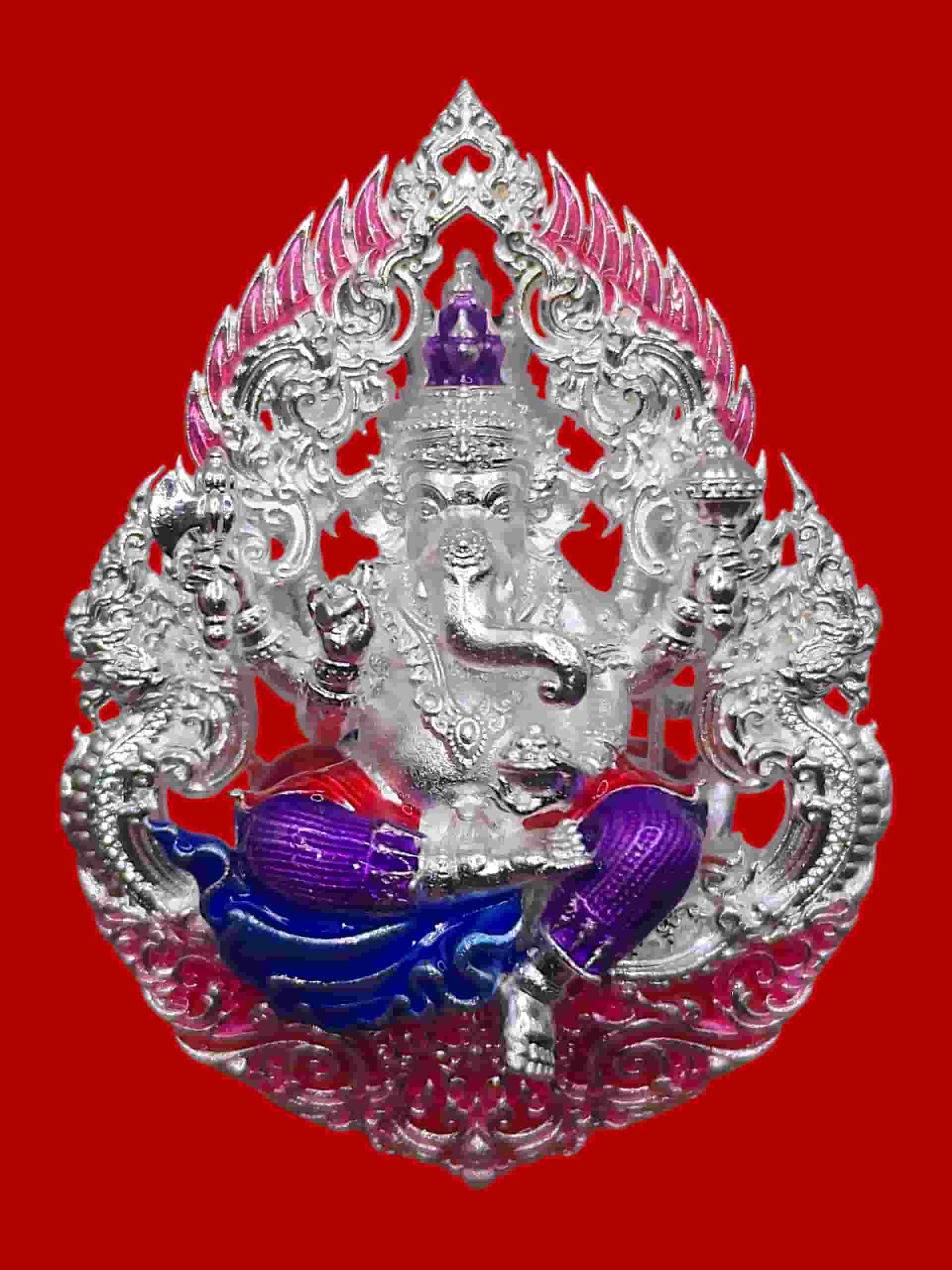 เหรียญพุทธศิลป์งามเลิศพระพิฆเนศหลังพรหม รุ่นเจ้าสัวจตุรถีมหาเศรษฐี วัดสมานรัตนาราม จ.ฉะเชิงเทรา ชุดนำฤกษ์ เนื้อบรอนซ์ผิวเงินลงยาชมพู No.๙ จำนวนสร้างแค่ 51 องค์ในโลก |