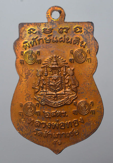 พิทักษ์แผ่นดิน 51 เหรียญเสมาหัวโตหลวงปู่ทวด อาจารย์ทอง วัดสำเภาเชย ปัตตานี เนื้อทองแดงผิวไฟ |