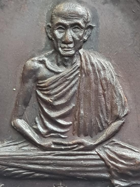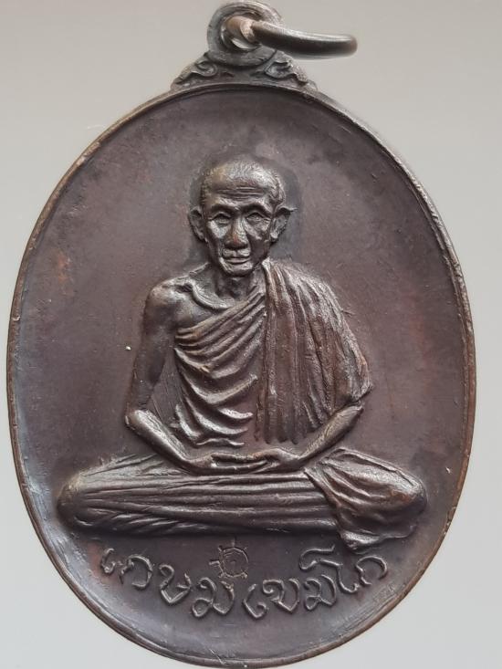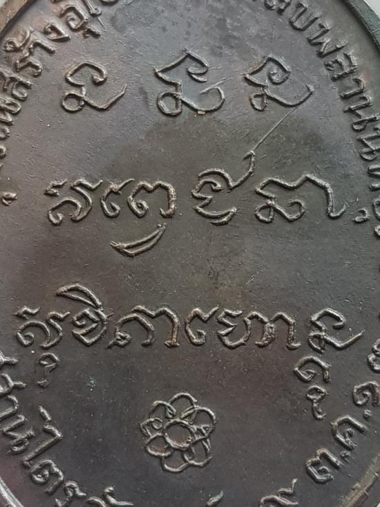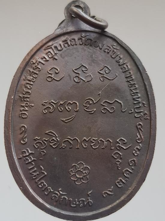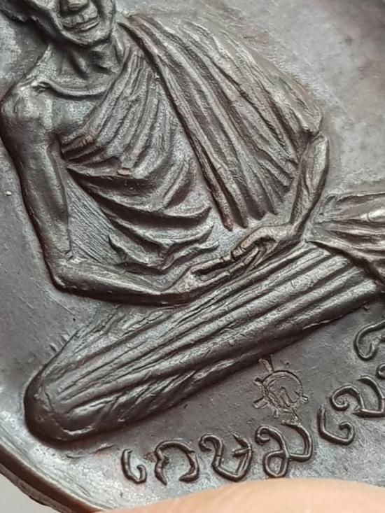 เหรียญวัดพลับพลา จ.นนทบุรี หลวงพ่อเกษม เขมโก สุสานไตรลักษณ์ จ.ลำปาง ปี 2517 เนื้อทองแดง มีวงเดือน หูติ่ง ยันต์ขีด |