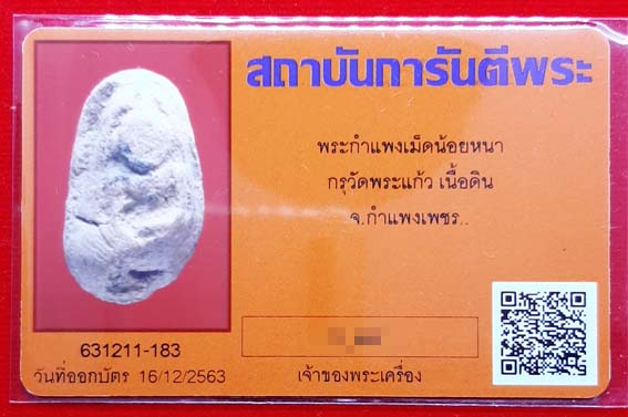 พระกำแพงเม็ดน้อยหน่า เนื้อดิน กรุวัดพระแก้ว จ.กำแพงเพชร พร้อมบัตรรับรองครับ |