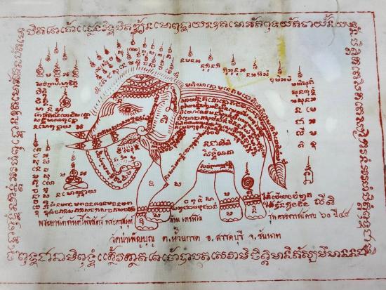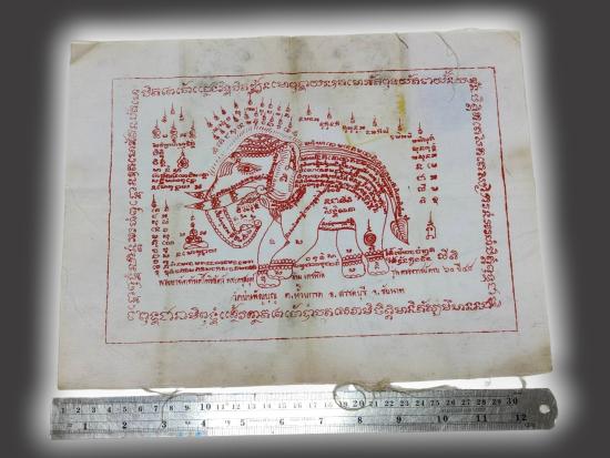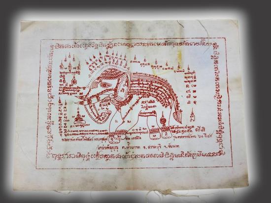 A1400.ผ้ายันต์ช้างแดง หลวงพ่อล้อม วัดใหม่บำเพ็ญบุญ จ.ชัยนาท |