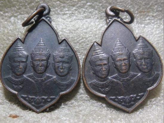 วัดใจเคาะเดียว..........100...........เหรียญสามพระมหากษัตริย์(พ่อขุนรามคำแหงมหาราช./พญาเม็งราย./พญางำเมือง.) พิธีใหญ่ พ.ศ.๒๕๒๕ ตอกโค๊ต หลวงปู่แหวนปลุกเสก รวม 2 เหรียญ |