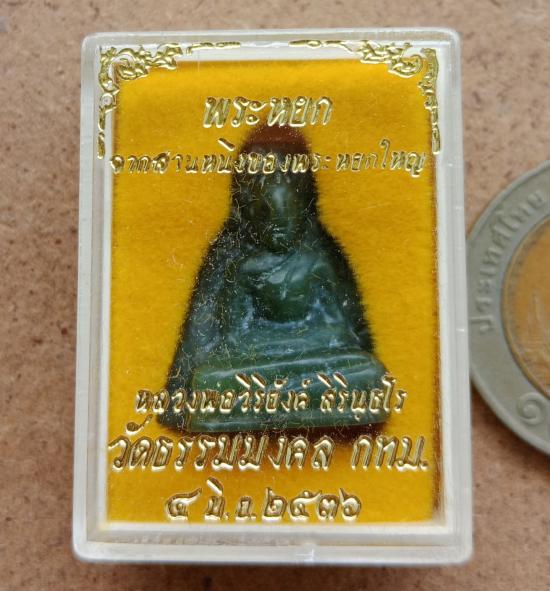 พระหยก แกะจากส่วนหนึ่งของพระหยกใหญ่ หลวงพ่อวิริยังค์ วัดธรรมมงคล ปี2536 พร้อมกล่อง ตามรูปครับ