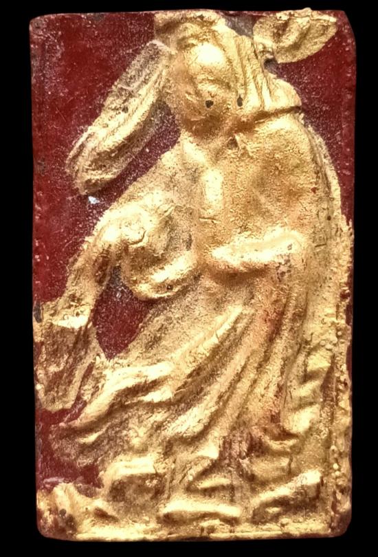 วัดใจ พระเนื้อดินเผา เจ้าแม่กวนอิม หลังหนังสือจีน ลงชาดปิดทอง (พ่อท่านคล้าย ปลุกเสก ปี 2500 |