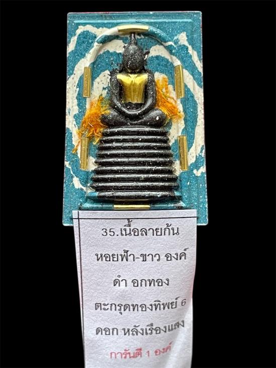 ..พระสมเด็จ 9 ชั้น รุ่น จินดามณีมนต์พระกาฬ หลวงปู่ศิลา วัดโพธิ์ศรีสะอาด จ.กาฬสินธุ์ เนื้อลายก้นหอยฟ้า-ขาว องค์ดำ อกทอง ตะกรุดทองทิพย์ 6 ดอก เรืองแสง No.29 พร้อมกล่องเดิมครับ |