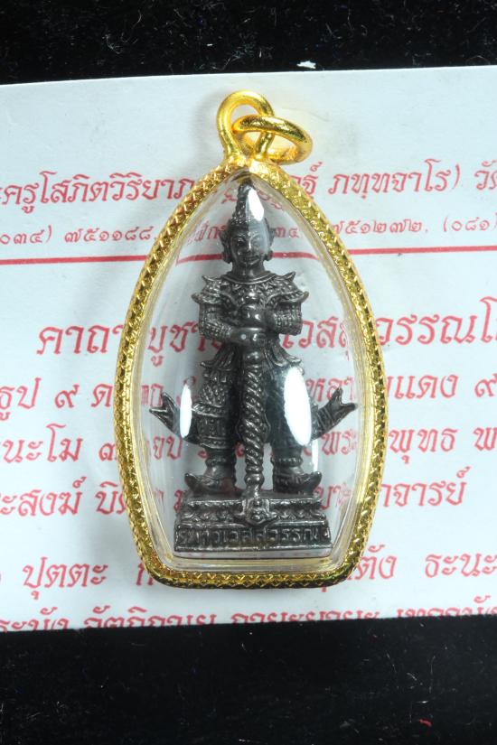 ** 100 เดียวพร้อมเลี่ยมไมครอน **ท้าวเวสสุวรรณฯ วัดจุฬามณี รูปหล่อขนาดห้อยคอ หน้าเทพ เนื้อรมดำ ปี 2562/// |