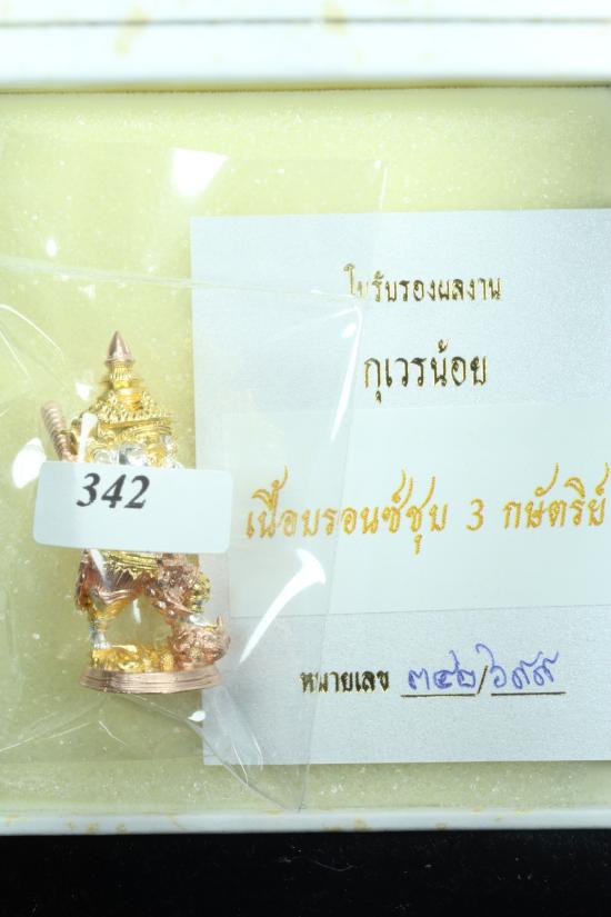 ** นิยมโคตรสวย เลขสวยเบอร์ 342 ศิลป์สวยๆ พุทธคุณแน่นๆ พิธีใหญ่ ราคาจองมา 999 **กุเวรน้อย รุ่น ชนะมารบันดาลทรัพย์ (ลอยองค์) ข้าจะปราบหมู่มาร และจะบันดาลทรัพย์ให้พวกเอ็ง เนื้อ บรอนซ์ ชุบ 3 กษัตริย์