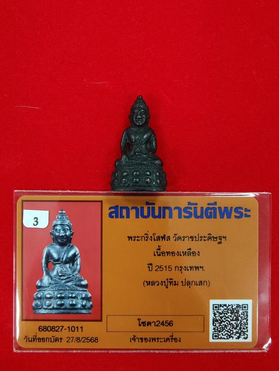 พระกริ่งโสฬส มปร. ปี 2515 เนื้อทองเหลืองรมดำ วัดราชประดิษฐ์ กรุงเทพมหานคร หลวงปู่ทิม วัดละหารไร่ จ.ระยอง ปลุกเสก พระดี พิธีใหญ่ ในหลวงรัชกาลที่ 9 เสด็จในพิธีพุทธาภิเษก กริ่งดังครับ สวยๆเดิมๆพร้อมบัตรรับรองครับ ยินดีรับประกันตามกฏเวปจีพระครับ |