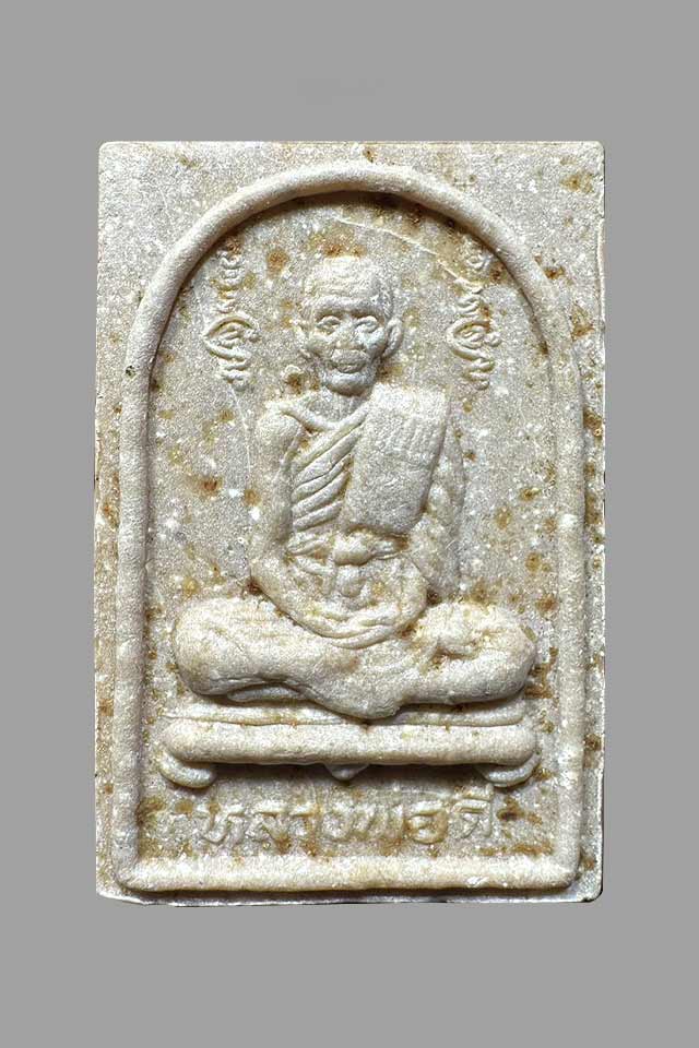 พระผงรูปเหมือนหลวงพ่อดี วัดพระรูป หลังพระนอน เนื้อผงน้ำมัน |