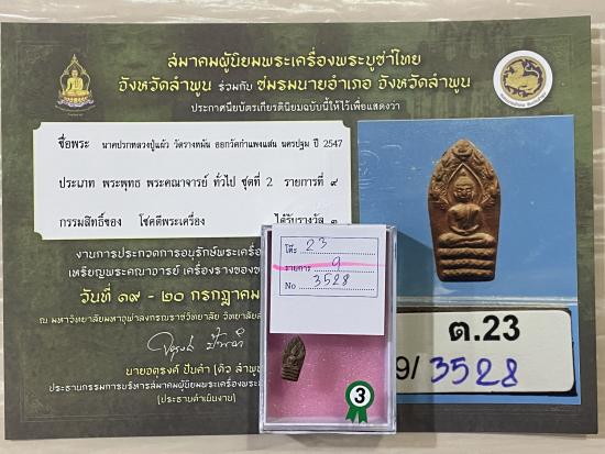 ออกวัดกำแพงแสน สร้างปี 2547 สภาพสวย สมบูรณ์ ไม่หักไม่ซ่อม รับประกันพระแท้ ดูง่าย ใบประกาศรางวัลที่3งานสมาคม |