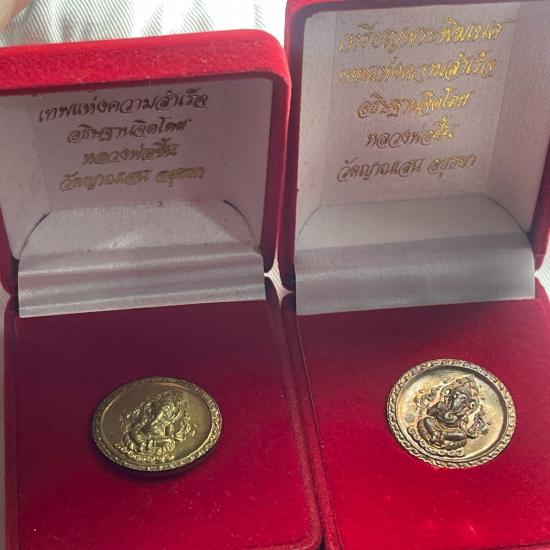2 เหรียญพร้อมกล่อง เหรียญพระพิฆเนศหลวงพ่อชื้น วัดญาณเสนปีพ.ศ 2546 |