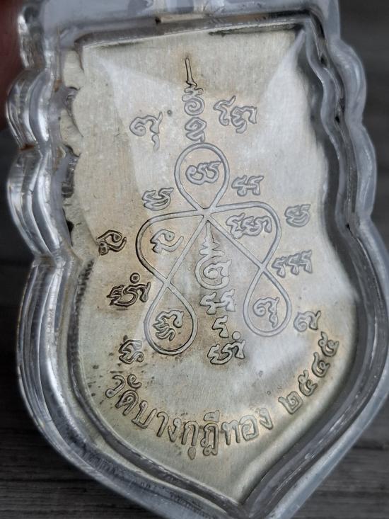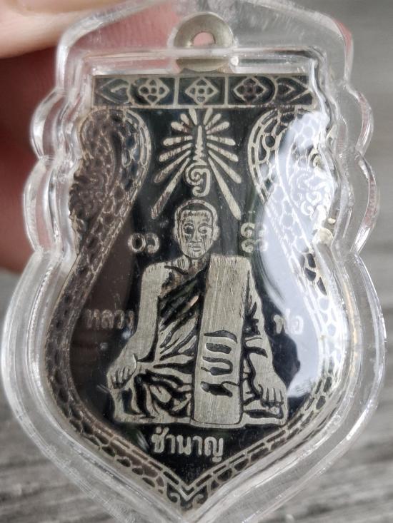เหรียญเสมาลงถมหลังยันต์ครู หลวงพ่อชำนาญ วัดบางกุฎีทอง จ.ปทุมธานี พ.ศ.2545 เนื้ออัลปาก้า |