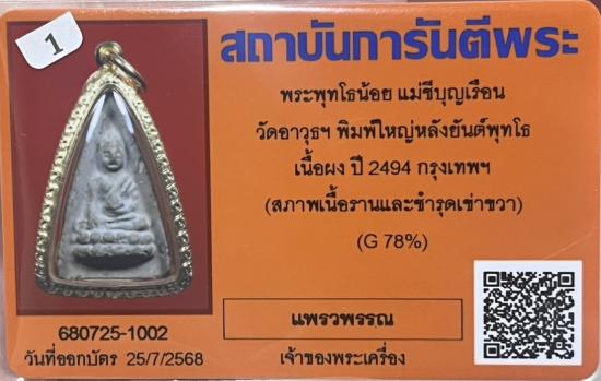 พระพุทโธน้อยพิมพ์ใหญ่เนื้อผงพุทธคุณรุ่นแรกปี2494.วัดอาวุธ.คุณแม่บุญเรือน