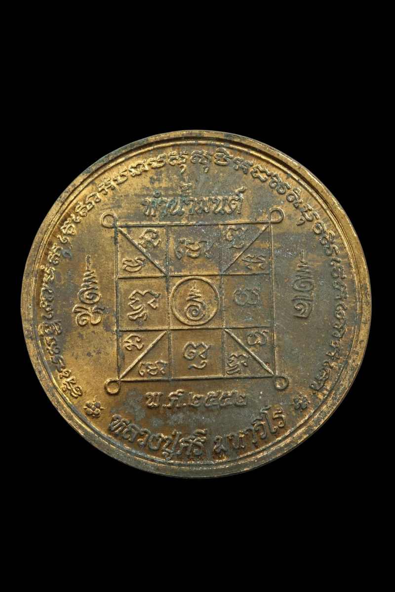 เหรียญทำน้ำมนต์หลวงปู่ศรี มหาวีโร วัดป่ากุง ร้อยเอ็ด รุ่นแรก ปี ๒๕๕๒ เนื้อสัมฤทธิ์ พิมพ์ยันต์นะมหาเศรษฐี |