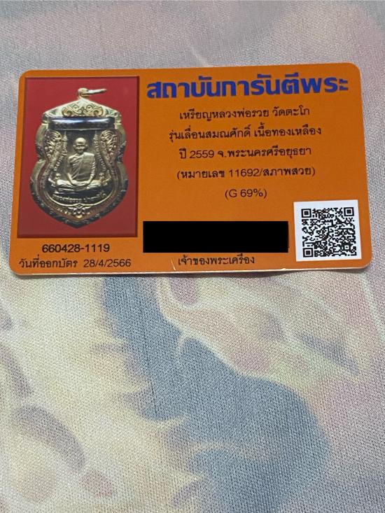 เหรียญหลวงพ่อรวย วัดตะโก ปี59 เนื้อทองเหลือง เลข11692 จ.พระนครศรีอยุธยา กล่องเดิม เลี่ยมทองพร้อมบัตรรับรองฯ โอนเงินแล้วแจ้งรายละเอียดการโอนทาง Mailbox ของเวปจี ได้รับแจ้งว่าโอนเงินแล้วจะส่งพระภายใน 3 วันทำการ