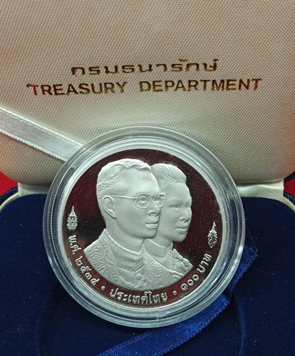 ด้านหน้า - กลางเหรียญมีพระบรมรูป พระบาทสมเด็จพระปรมินทรมหาภูมิพลอดุลยเดช ทรงเครื่องบรมขัตติยราชภูษิตาภรณ์ ทรงฉลองพระองค์ครุย ทรงสายสร้อยแห่งเครื่องขัตติยราชอิสริยาภรณ์ อันมีเกียรติคุณรุ่งเรืองยิ่งมหาจักรีบรมราชวงศ์ และสายสร้อยแห่งเครื่องราชอิสริยาภรณ์จุลจอมเกล้า และพระรูปสมเด็จพระนางเจ้าสิริกิติ์พระบรมราชินีนาถ ทรงฉลองพระองค์ชุดไทยทรงสะพักปักลาย ทรงสายสะพายและสายสร้อยแห่งเครื่องขัตติยราชอิสริยภรณ์ อันมีเกียรติคุณรุ่งเรืองยิ่งมหาจักรีบรมราชวงศ์ ประดับเหรียญรัตนาภรณ์รัชกาลที่ 9 ชิดวงขอบเหรียญด้านซ้ายมีอักษรพระปรนามาภิไธยย่อ "ภปร." ภายใต้พระมหามงกุฎ
