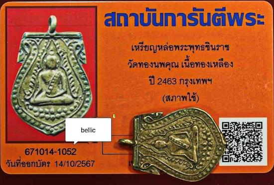 เหรียญพระพุทธชินราช วัดทองนพคุณ ปี 2463 หลวงปู่ศุข( เจ้าพิธีเททองด้วยตัวท่านเอง)พร้อมบัตรGpra