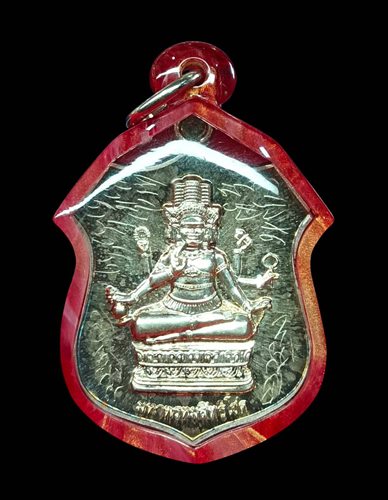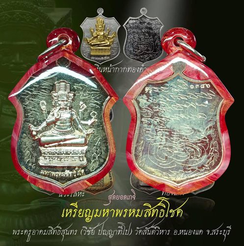 | เหรียญมหาพรหมสิทธิโชค พระครูปลัดวิชัย วัดสันติวิหาร เนื้อเงิน หมายเลข 1386 จารยันต์ทั้งหน้าและหลัง จำนวนการสร้าง 1500 องค์ |